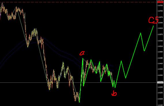 澳元和歐元有所不同,波浪理論圖解中A是個朝五,后面出現了很復雜的平臺型B浪,這種位置可以博后面的C浪,也有280點的行情,這兩個貨幣暫時來看歐元比澳元強一點,可以優先做多歐元,不過不建議加倉。